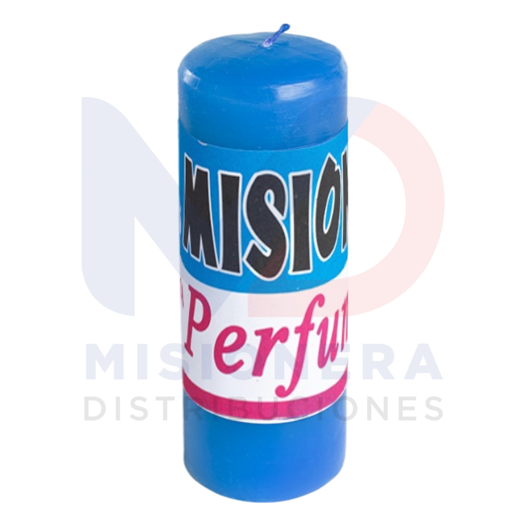 Vela compacta perfumada celeste tipo 70. Venta por unidad.