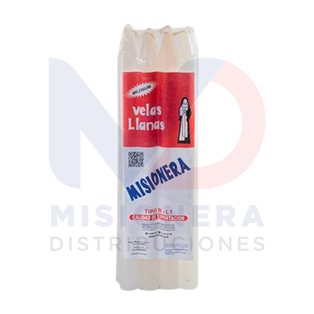 Velas llanas L1 XL por paquete de 8 unidades o por caja con 9 paquetes de 8 unidades (total de 72 velas).