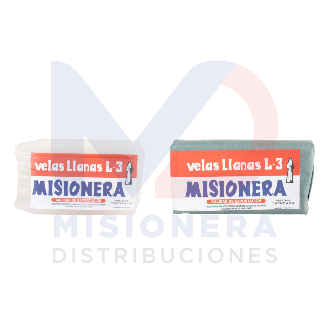 Velas llanas L3 por paquete de 10 unidades o por caja con 20 paquetes de 10 unidades (total de 200 velas). Vela llana de 13.2cm de alto x 1.3cm